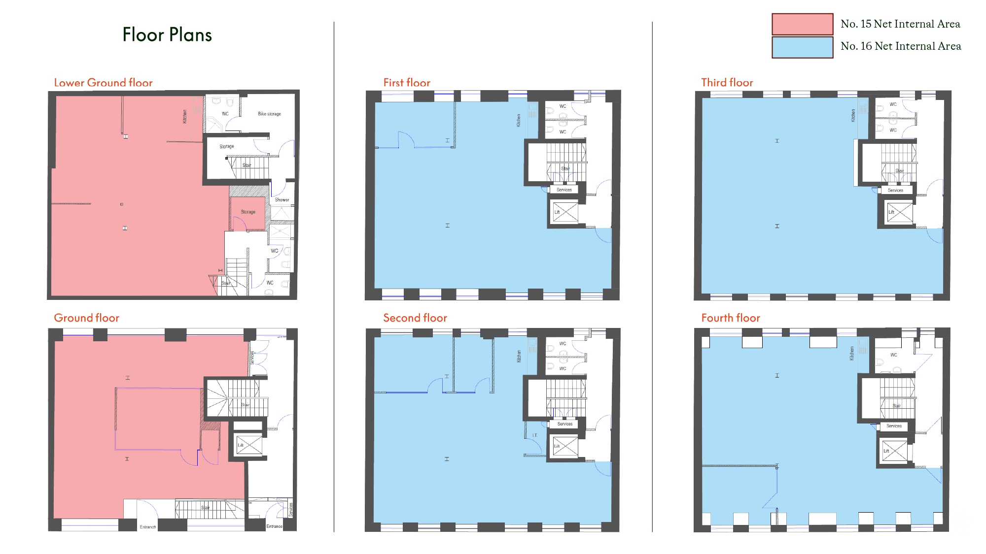 The office accommodation is arranged over 1st–4th floors, the Ground and Lower Ground are currently occupied as a showroom.